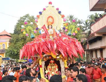 In South Goa, in the idyllic surrounding of Rivona, live the Dravid Brahmins named Bakhle, Totekar, Korde and so on. In ancient times they worshiped their goddess Shree Shanteri in their green and beautiful village. One night one of these Brahmins had a dream in which the Goddess asked to be taken to Lotoulim and worshiped near Shree Ramnath.